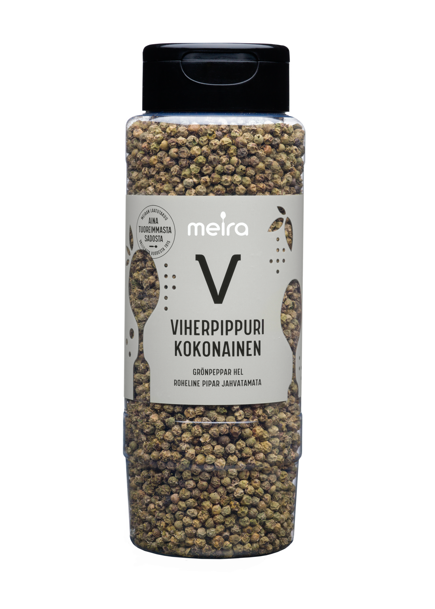 Viherpippuri on pippuriköynnöksen raakana poimittu ja kuivattu marja. Viherpippurissa on mieto ja samalla pippurimainen maku. Se sopii liha-, kala- ja kasvisruokien sekä kastikkeiden ja salaattien maustamiseen. Murenna viherpippurit huhmaressa. Meiran laatutakuu: Meiran mausteet ovat aina tuoreimmasta sadosta, jolloin kaikki luonnolliset makuaromit ja tuoksut ovat tallella.