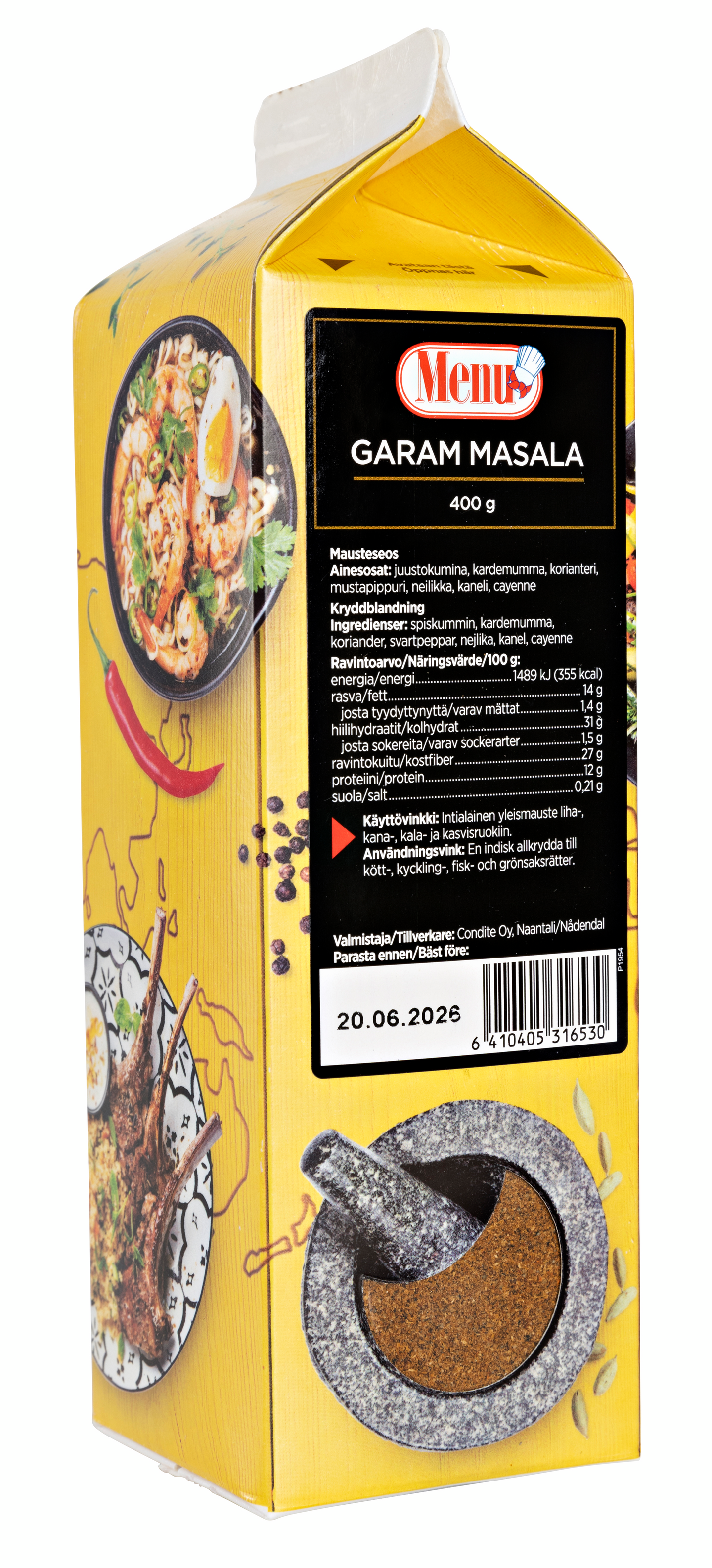 Garam Masala on intialainen yleismauste, joka antaa aromikkaan ja täyteläisen maun erilaisiin liha-, broileri-, kala-, kasvis- ja riisiruokiin.