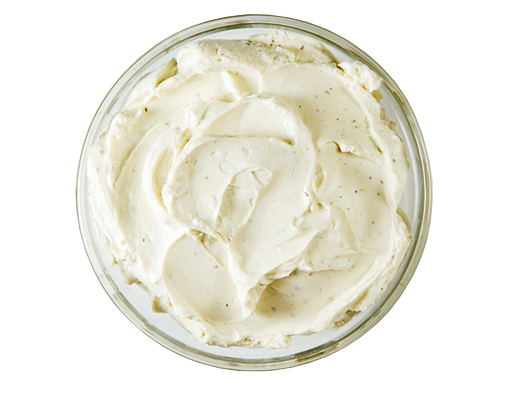Pastöroitu KERMA, rasvaton MAITOjauhe, valkosipuli, mauste- ja yrttiseos (basilika, rakuuna, oregano, persilja, timjami, salvia, sipuli, purjo), sakeuttamisaineet (E440, E412), suola, säilöntäaine (E202 kaliumsorbaatti), hapate.