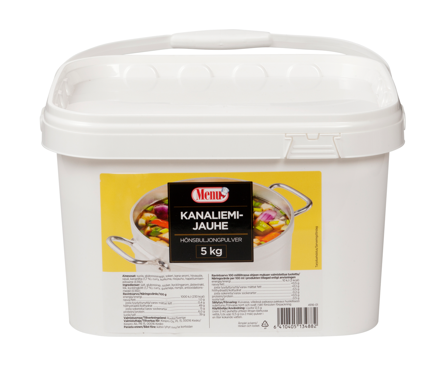 Suola, glukoosisiirappi, sokeri, kana-aromi, hiivauute, sipuli, kananliha (1,7 %), curry, kurkuma, riisijauho, hapettumisenestoaine (E 392).