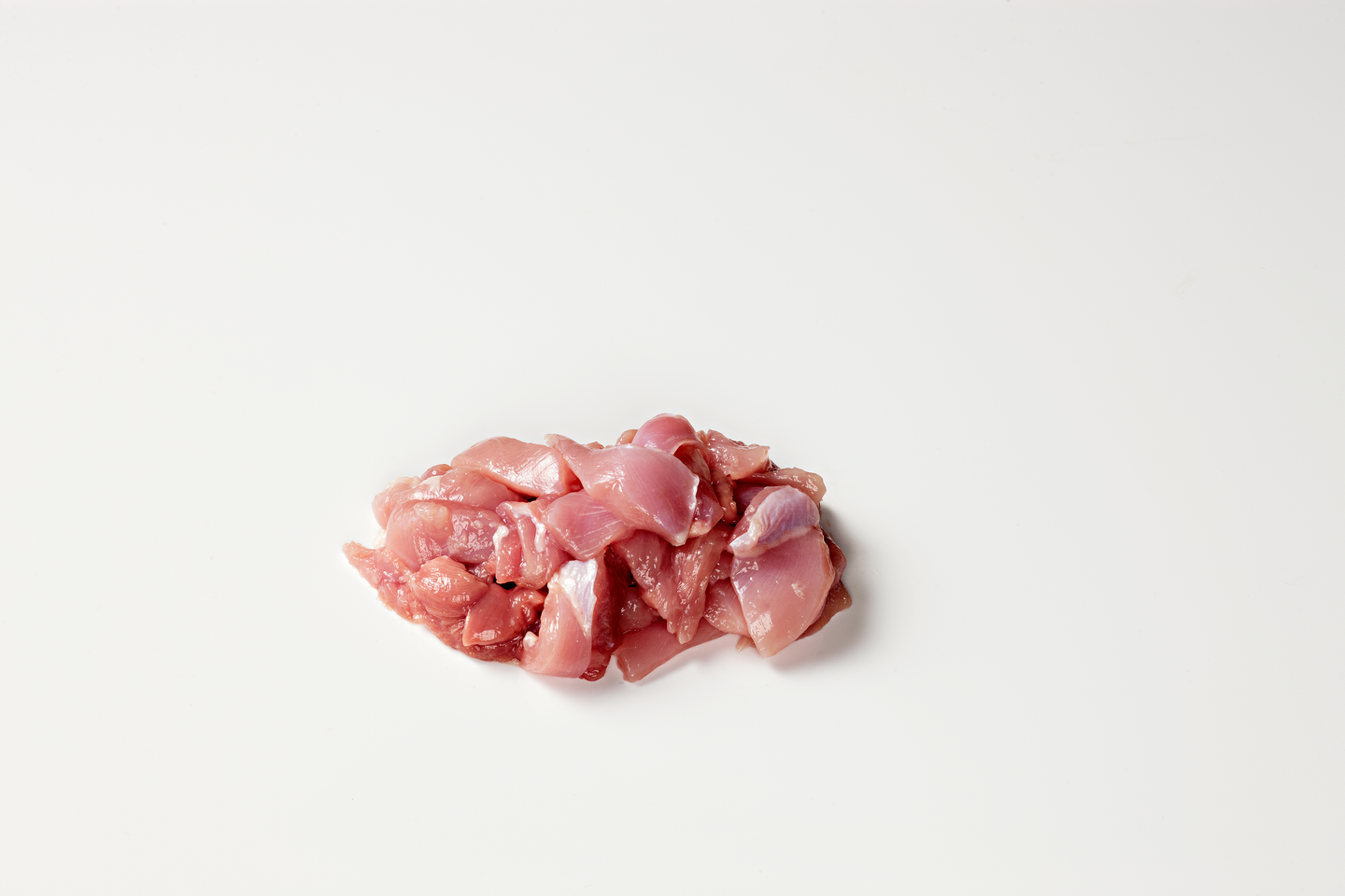 Suomalaista broilerin luutonta nahatonta reisiosaa suikaloituna ja miedosti suolattuna.