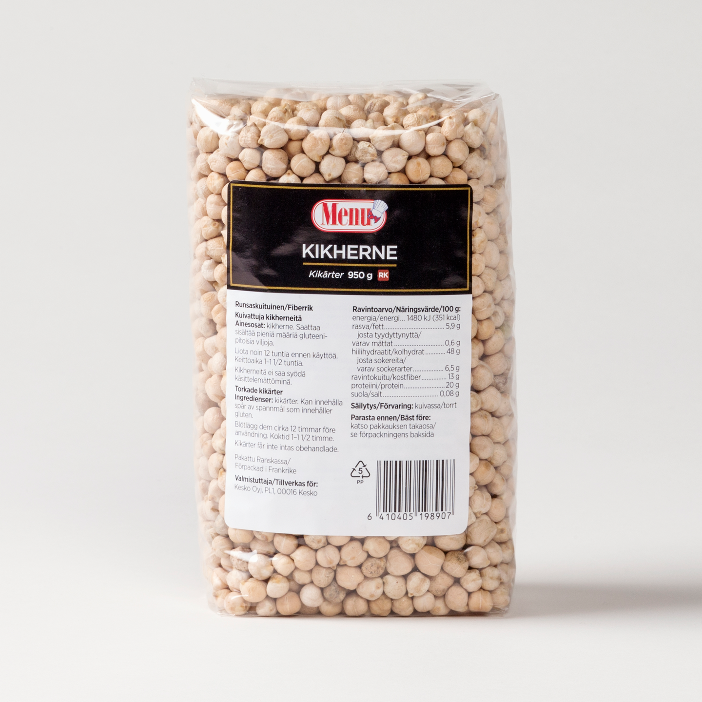 kikherne (Ranska, Turkki, Intia). Saattaa sisältää pieniä määriä gluteenipitoisia viljoja.