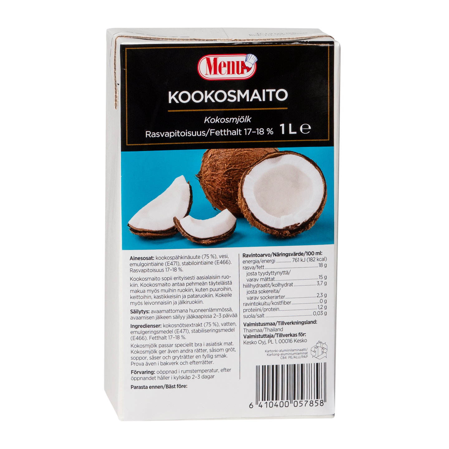 kookospähkinäuute (75 %), vesi, emulgointiaine (E471), stabilointiaine (E466).
