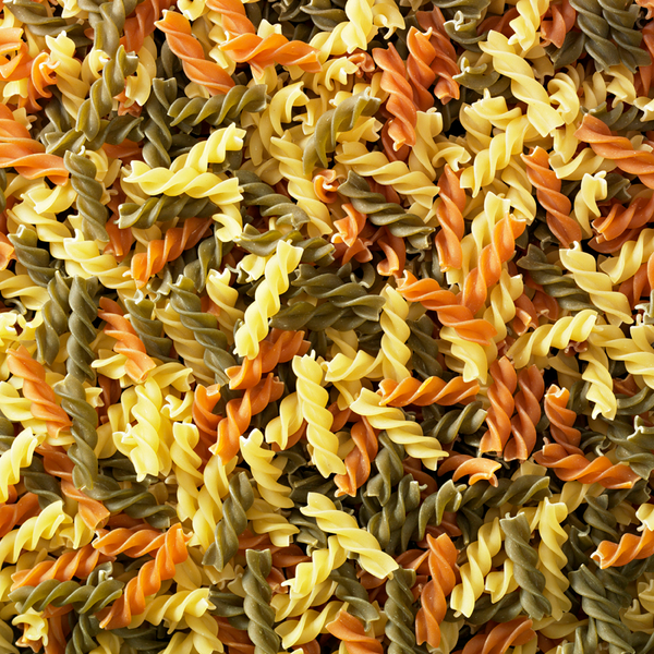 keltainen pasta (durumVEHNÄjauho), punainen pasta (durumVEHNÄjauho, kuivattu tomaatti 4 %), vihreä pasta (durumVEHNÄjauho, kuivattu pinaatti 2 %). Saattaa sisältää pieniä määriä kananmunaa.