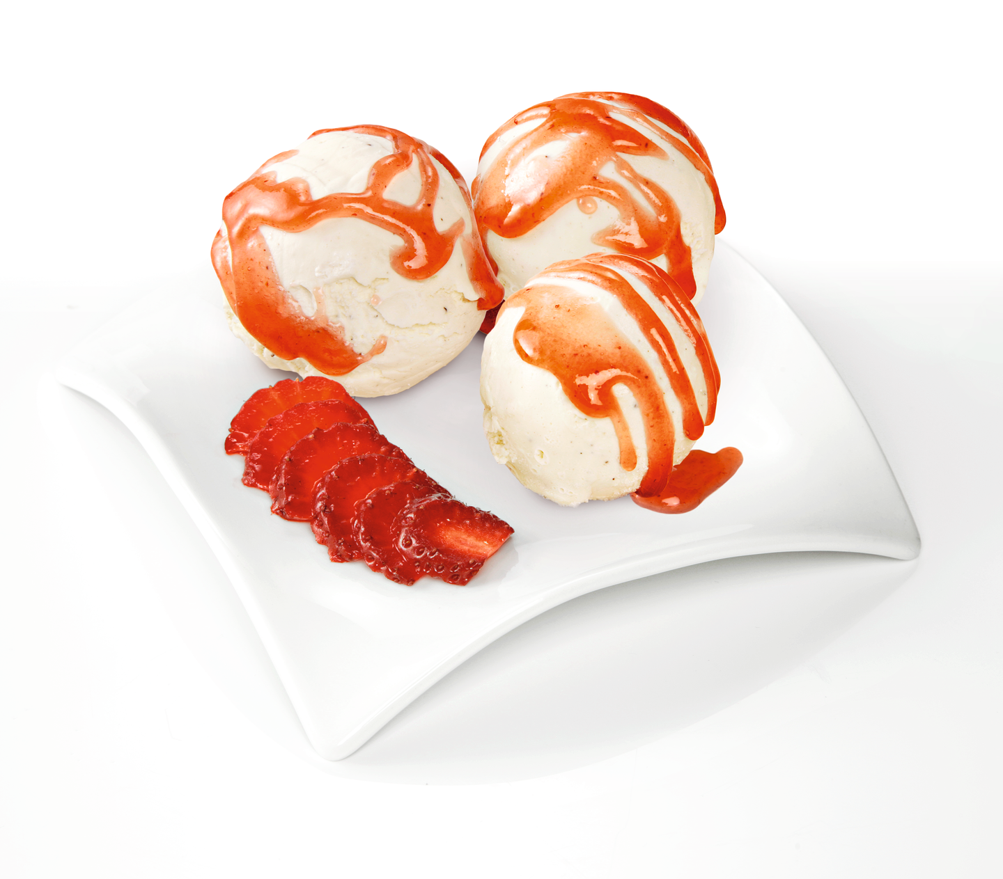 glukoosisiirappi, sokeri, mansikka (22 %, EU ja muu kuin EU), vesi, happamuudensäätöaine (E330), tiivistetty mansikkasose, sakeuttamisaine (E440), aromi, väri (E163), säilöntäaine (E202)