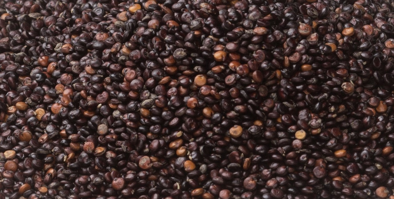 musta kvinoa (Peru). Saattaa sisältää pieniä määriä maapähkinää, pähkinöitä ja seesaminsiemeniä.