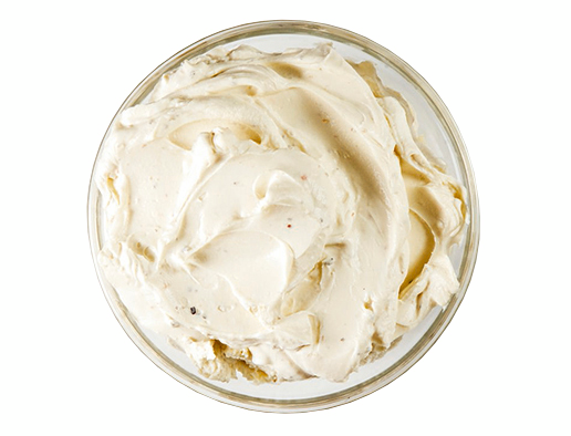 Pastöroitu KERMA, rasvaton MAITOjauhe, mausteet (mustapippuri, paprika, valkopippuri, oregano, sipuli, valkosipuli), sakeuttamisaineet (E440, E412), suola, säilöntäaine (E202 kaliumsorbaatti), hapate.