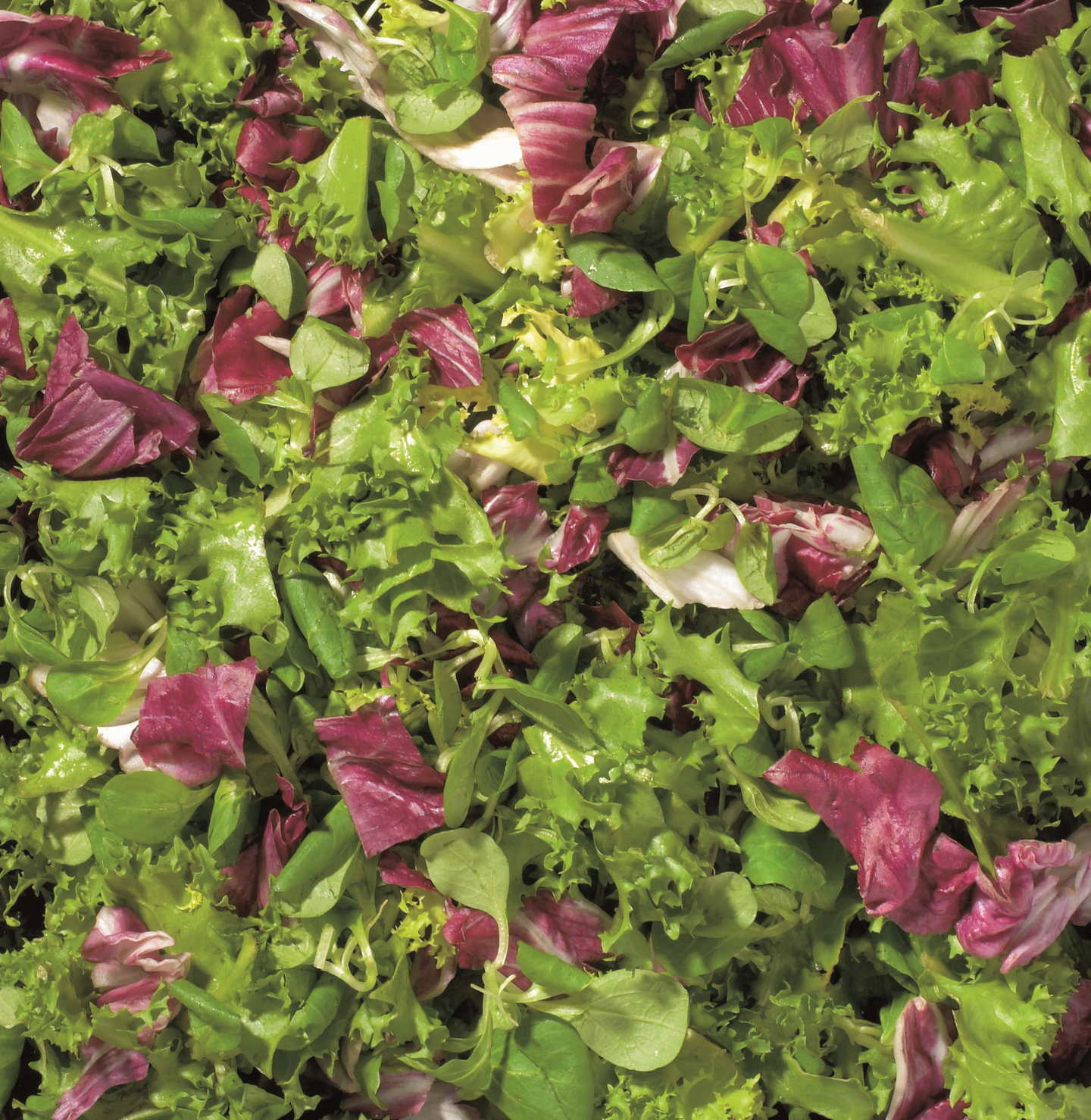 Friseesalaatti (50 %), punasalaatti (40 %), vuonankaali.
