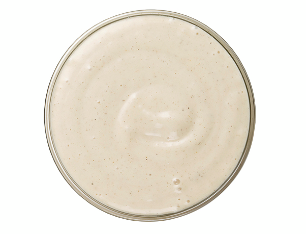 Vesi, rapsiöljy, SINAPPI [vesi, SINAPINSIEMEN, etikka, sokeri, suola, säilöntäaine (E202)], sokeri, etikka, valkoviinietikka, muunnettu perunatärkkelys, mausteet (mustapippuri, valkosipuli), jodioitu suola, säilöntäaine (E202), sakeuttamisaine (E415)