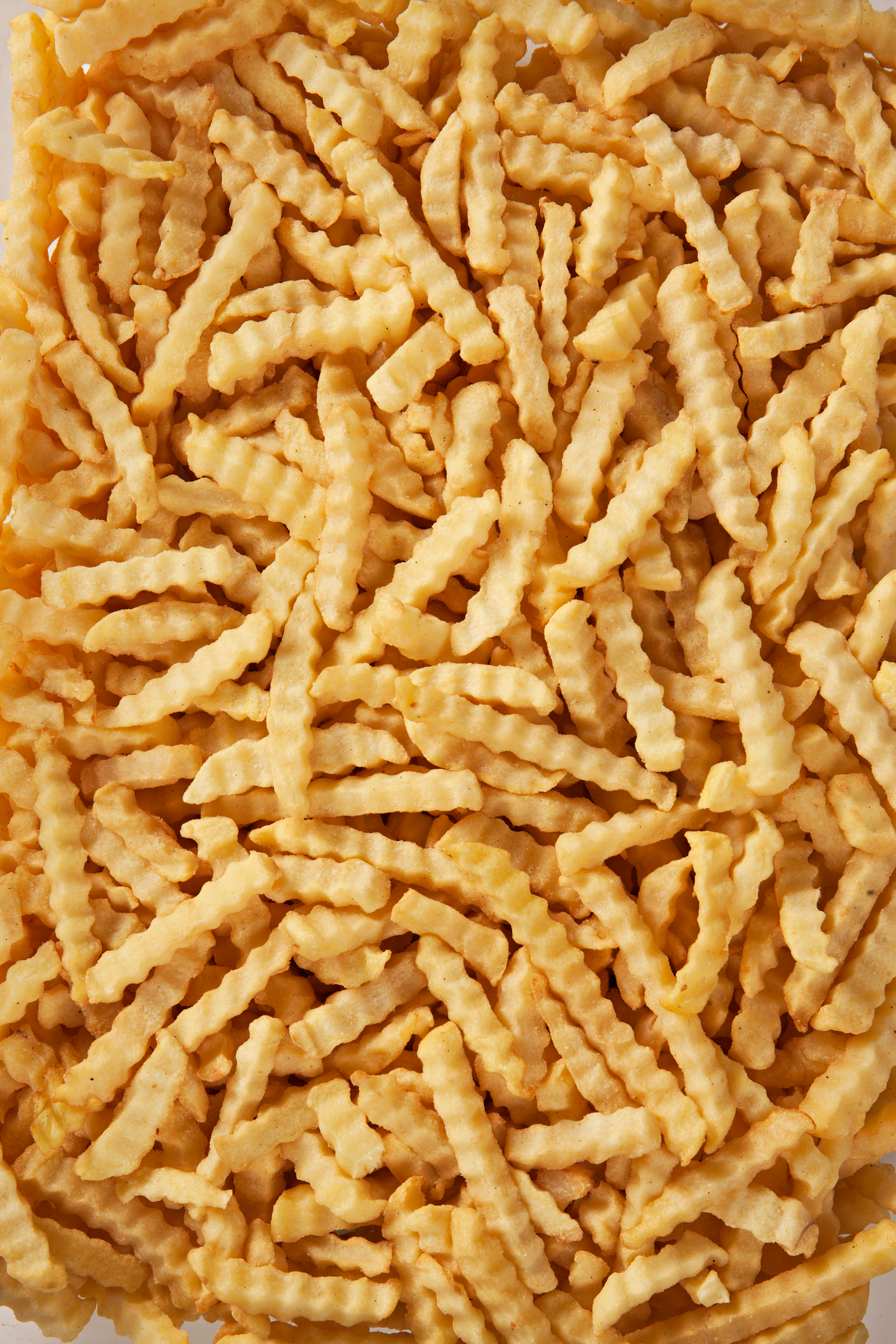 Pakastettuja, poimutettuja öljyssä esikeitettyjä ranskanperunoita.