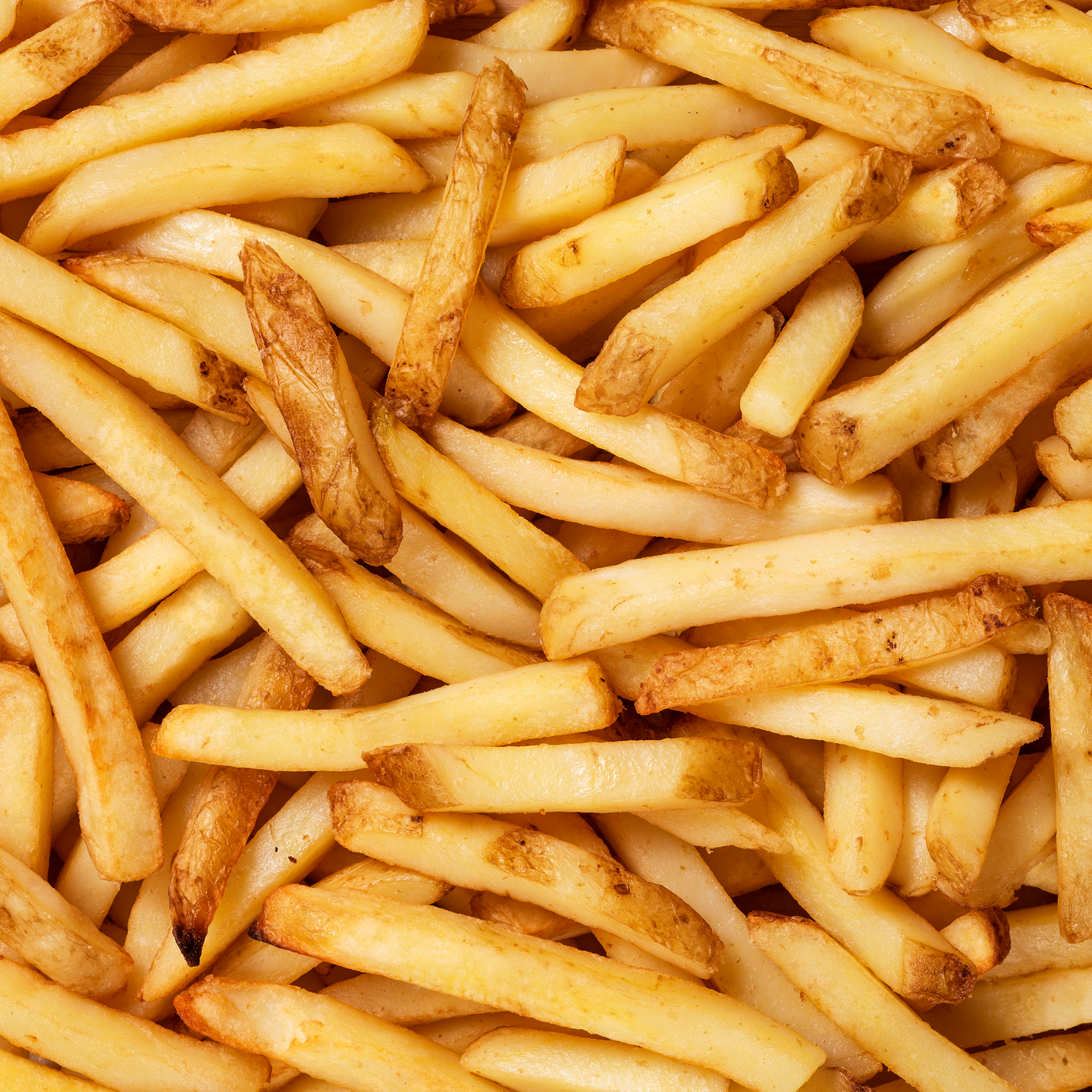 Pakastettuja, kasviöljyssä esikeitettyjä tikkuperunoita.