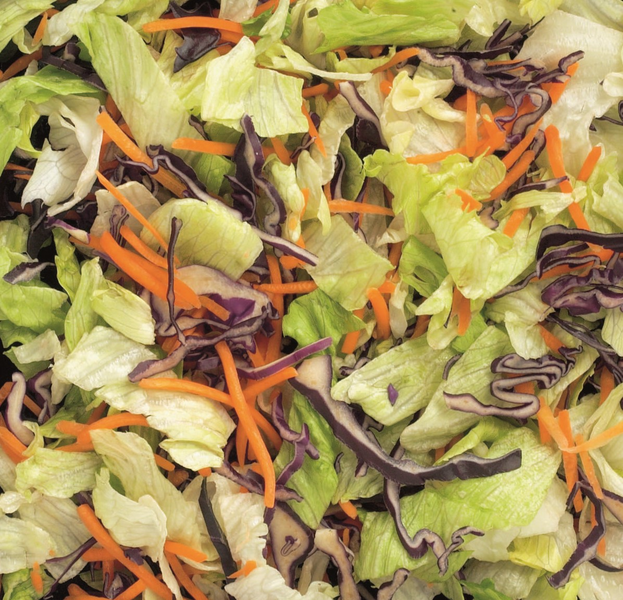 Jäävuorisalaatti (50 %), punakaali (25 %), porkkana.