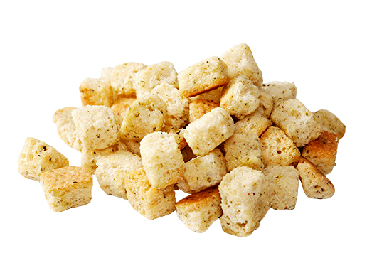MaidotonValkosipulilla, persiljalla, oliiviöljyllä ja merisuolalla maustettuja paahdettuja leipäkuutioita