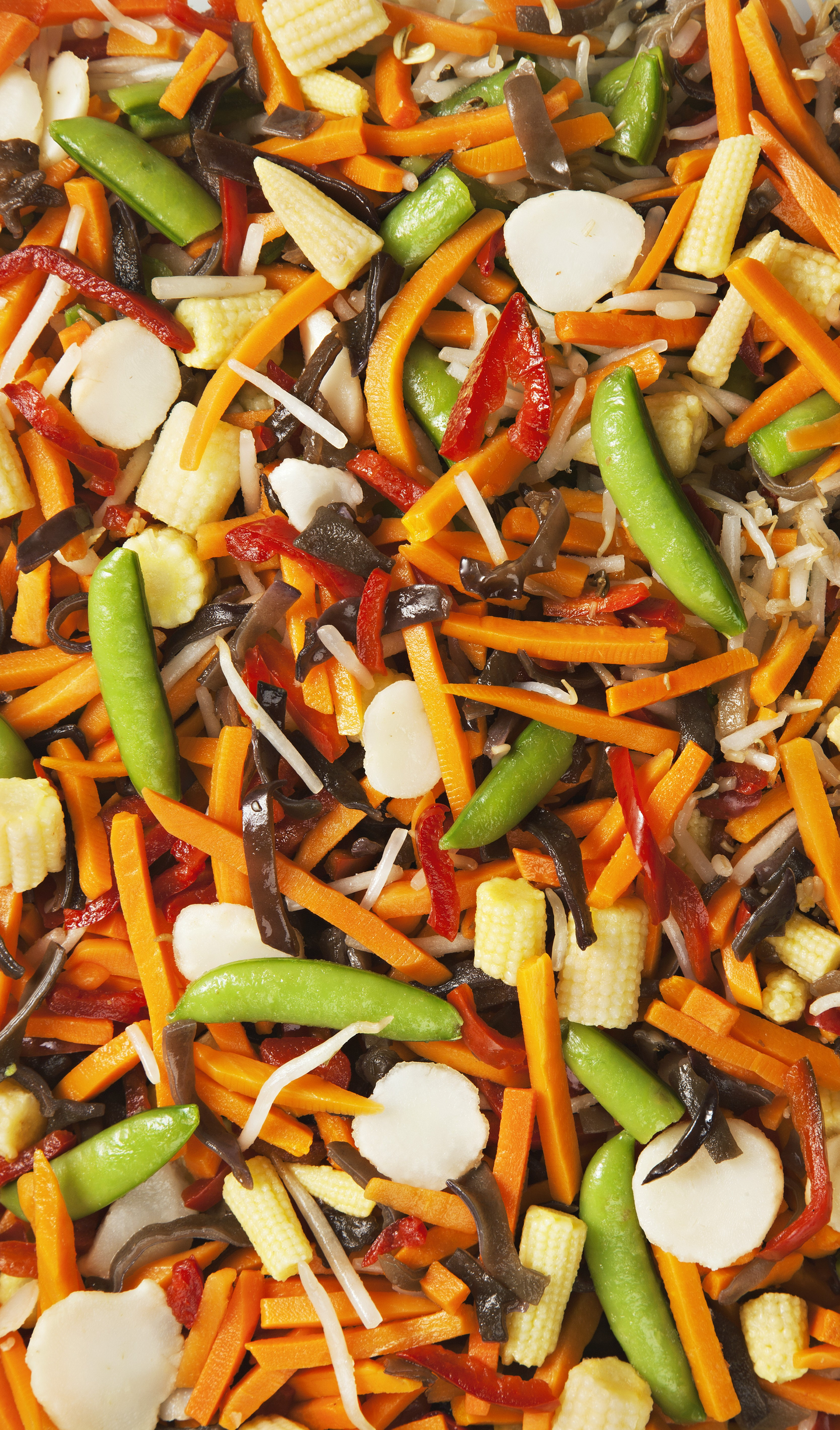 porkkana (30%), mungopavun ituja (15%), herneenpalko (13,5%), paprika, minimaissi, mustasieni, vesikastanja