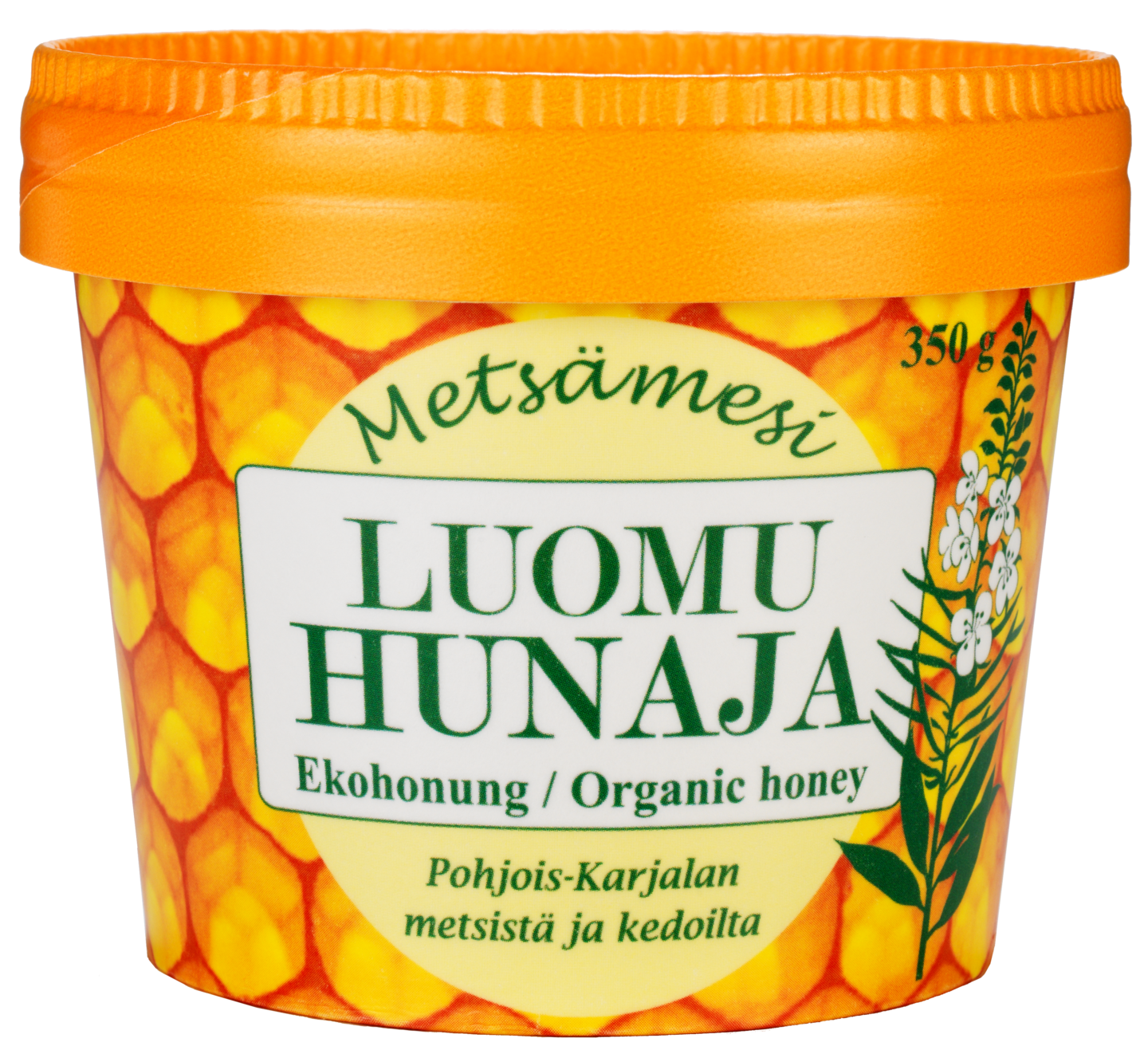 Pehmeänmakuinen luomuhunaja saa arominsa maaseudun kukista.Mesikasveina mm. metsävadelma, maitohorsma, puolukka, mustikka, apila.K uumentamattomana luomuhunajamme sisältää luonnon antamat entsyymit ja ravintoaineet.