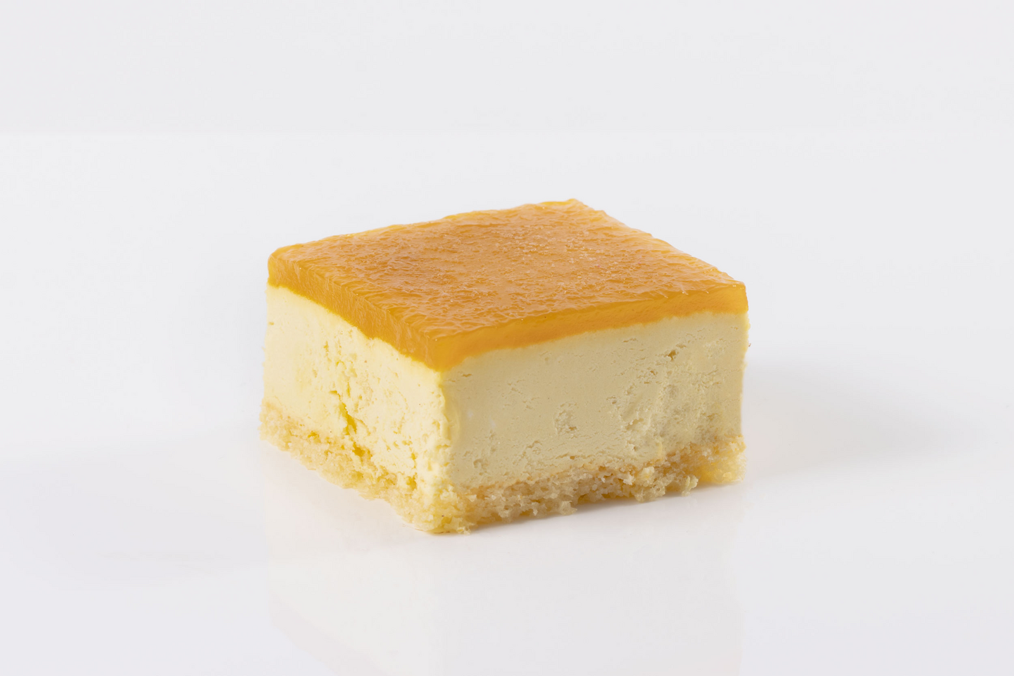 VegaaninenHerkullinen kasvipohjainen vegaaninen mango-passion annosleivos: laktoositon ja gluteeniton. Tuote on pakkauksessa pienellä muovisella 'tarjottimella', jolla se on helppo asettaa tarjolle.