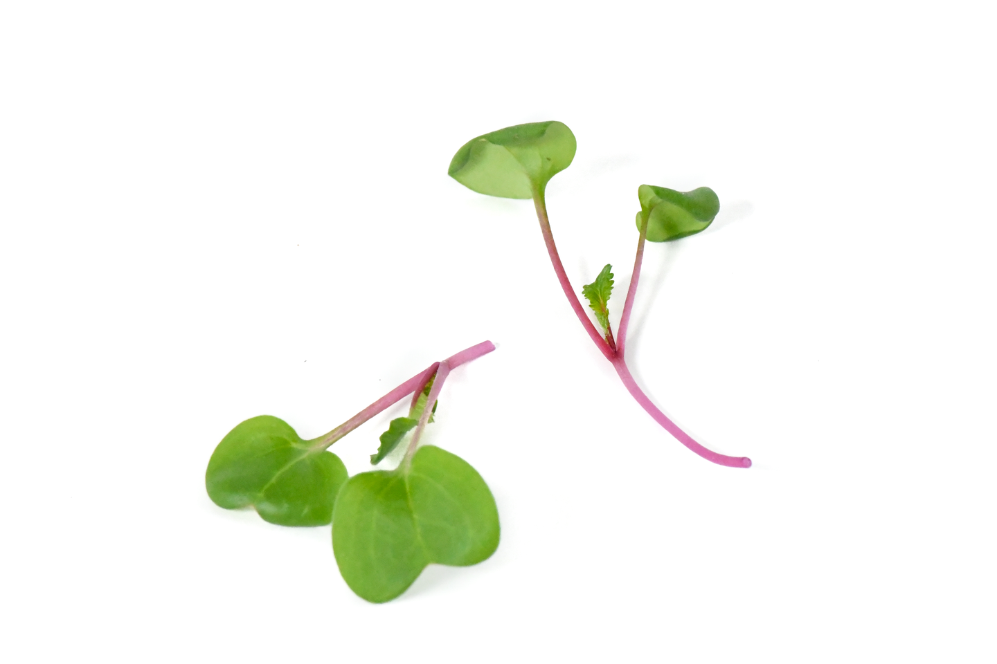 Miedosti retiisille maistuva verso, kaunis punainen varsi ja vihreät lehdet.