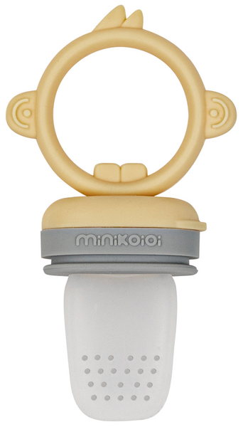 Minikoioi Pulps -maistelututissa on turvallinen reikäkoko, kun hedelmiä ja vihanneksia syötetään ensimmäisiä kertoja. Jäähdytetyt/jäädytetyt ruoat rauhoittavat vauvan ikeniä. Kahvaosa on suunniteltu pienille käsille sopivaksi. Irroitettavat osat -