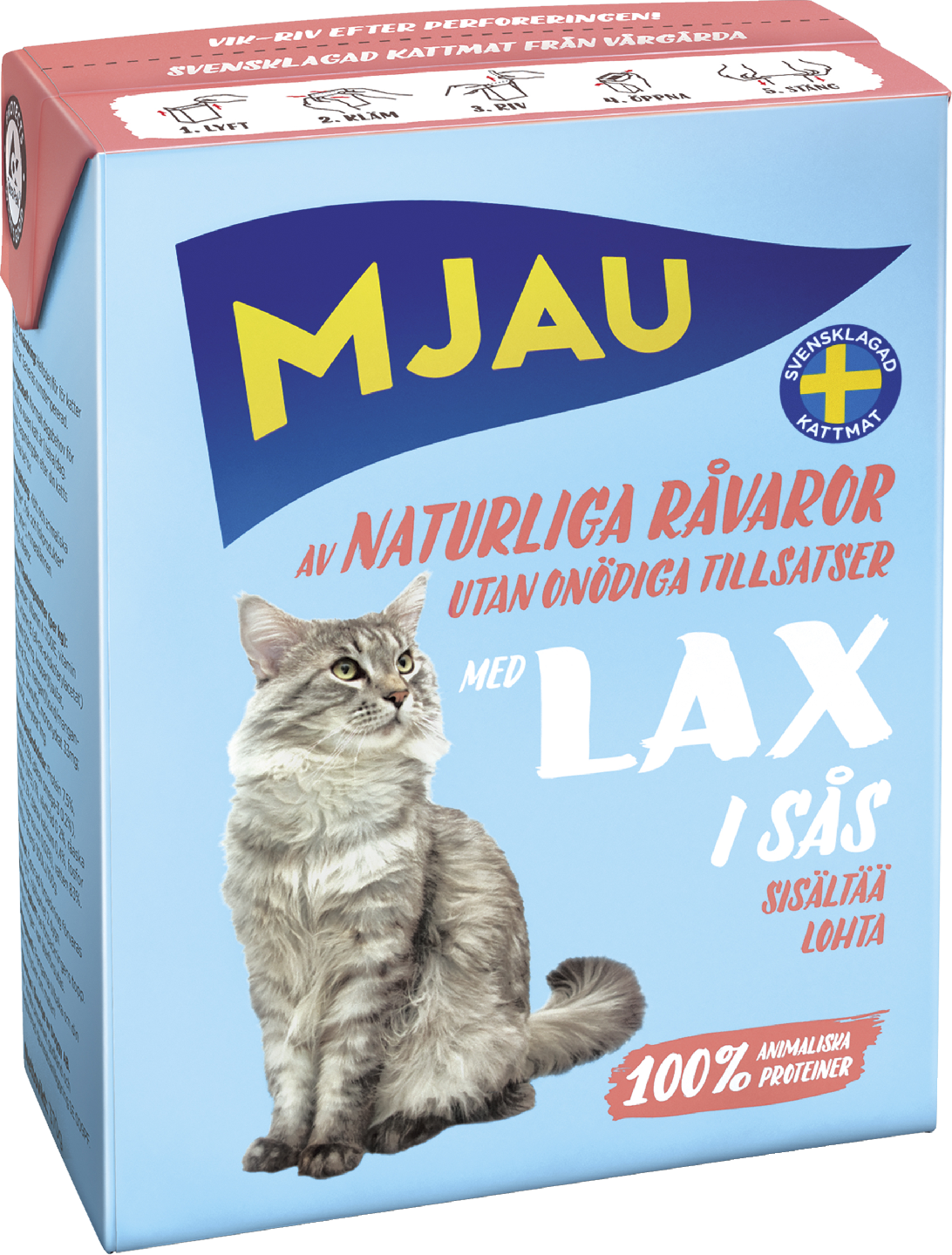 Mjau lohta kastikkeessa on tehty 100-prosenttisesti eläinproteiineista ja se valmistetaan tuoreesta Pohjoismaisesta kalasta. Se on täysravinto, joka sisältää kaikki kissasi tarvitsemat ravinteet ja se voidaan antaa kissoille kaikissa elämänvaiheissa rodusta tai aktiivisuustasosta riippumatta. Märkäruoka sisältää sekoituksen vitamiineja, jotka täyttävät kaikki kissan tarpeet, mukaan lukien A-vitamiini ja kissan näölle hyödyllinen tauriini, E-vitamiini, joka suojaa kissasi päivittäiseltä stressiltä ja omega 3 -rasvahapot, jotka antavat terveellisen ja pehmeän turkin. Mjau lohta kastikkeessa myydään Tetra Recart® -pakkauksessa joka pitää ruoan tuoreena, on kätevä käsitellä, helppo kierrättää ja ystävällinen ympäristöllemme.