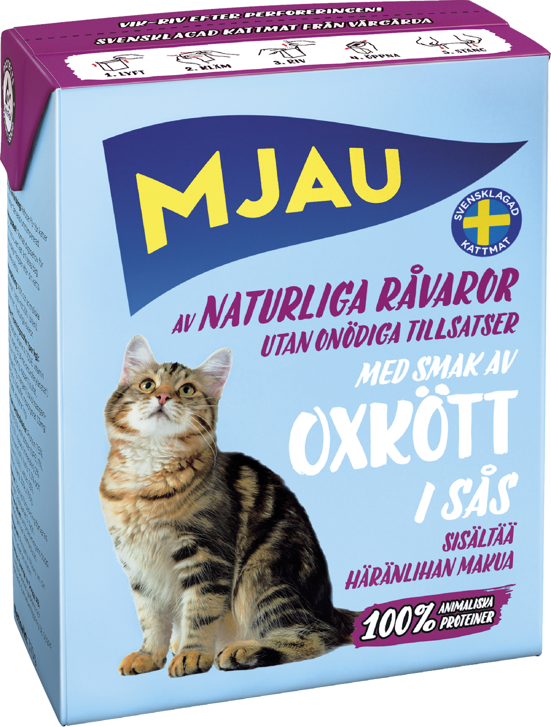 Mjau nautaa kastikkeessa tehdään 100-prosenttisesti eläinproteiineista, mikä on erityisen hyvä kissoille, koska ne ovat tiukkoja lihansyöjiä. Se on täysravinto, joka sisältää kaikki kissan tarvitsemat ravintoaineet ja voidaan antaa kissoille kaikissa elämänvaiheissa rodusta tai aktiivisuustasosta riippumatta. Mjaunautaa kastikkeessa sisältää sekoituksen vitamiineja, jotka täyttävät kaikki kissan tarpeet, mukaan lukien A-vitamiini ja tauriini, jotka ovat hyödyllisiä kissan näölle, sekä E-vitamiini, joka suojaa kissaasi päivittäiseltä stressiltä. Mjau jauhelihaa hyytelössä myydään Tetra Recart® -pakkauksessa joka pitää ruoan tuoreena, on kätevä käsitellä, helppo kierrättää ja ystävällinen ympäristöllemme.