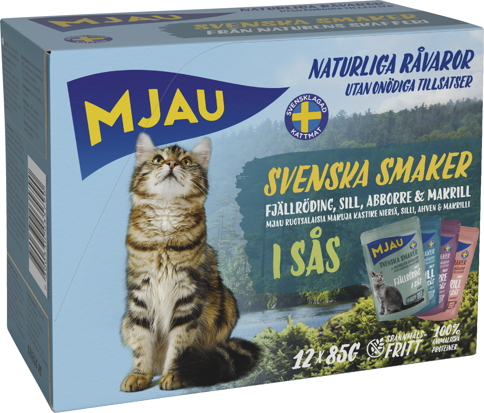Mjau Lajitelma Svenska Smaker Kala kastikkeessa 12x85g kissanruoka