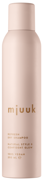 MJUUK REFRESH DRY SHAMPOOn ainutlaatuinen tuotekoostumus poistaa välittömästi hiusten ja hiuspohjan rasvaisuutta ja raikastaa tyven. Tuote auttaa tuomaan hiuksiin kevyen ja puhtaan tunteen pesukertojen välillä. Sopii kaikille hiustyypeille.