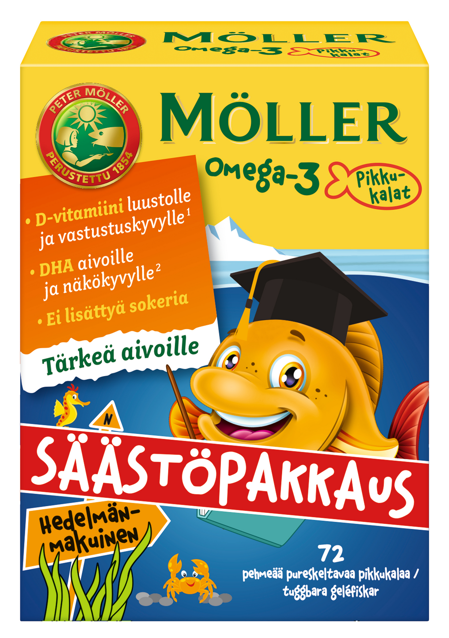 Möller Omega-3 Pikkukalat säästöpakkaus hedelmänmakuinen pehmeä pureskeltava 72kpl