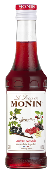 Grenadiini on ylivoimaisesti yleisin ja monipuolisin makeutusaine ja aromi klassisessa baarimixologiassa. Monet cocktailit sisältävät Grenadiinia. Sillä saa aikaan mukavan punaisen värin ja makean, hieman kirpeän maun, joka on erittäin suosittu lasten ja aikuisten keskuudessa. MONIN Grenadine siirappissa punaisten marjojen maussa on ripaus vaniljaa sekä kirkkaan punaista väriä. Siirappi parantaa alkoholittomia juomia, cocktaileja ja jopa jälkiruokia, marinadeja ja monia muita reseptejä.