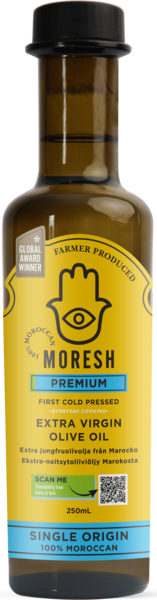 Moresh-oliiviöljy on korkealaatuinen, ekstra-neitsytoliiviöljy Marokosta, jossa se valmistetaan perinteisin menetelmin parhaista paikallisista oliiveista. Marokon aurinkoiset ilmasto-olosuhteet ja hedelmällinen maaperä luovat ihanteelliset olosuhteet oliivien kasvatukselle, mikä antaa Moresh-oliiviöljylle sen rikkaan, hedelmäisen ja monivivahteisen makuprofiilin. Tämä öljy sopii erinomaisesti sekä ruoanlaittoon että viimeistelyyn, tuoden esiin ruokien luonnolliset maut. Moresh on arvostettu valinta gourmet-keittiöissä ympäri maailman ja tunnettu sitoutumisestaan kestävään ja laadukkaaseen tuotantoon.
