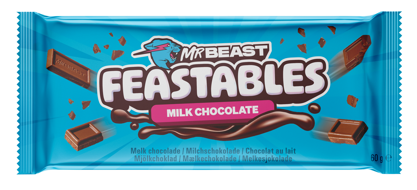 Maailman suosituimman YouTube-tähden MrBeastin kehittämät Feastables suklaat nyt Suomessa! Luonnolliset ainesosat, reilu maku – ei kompromisseja. Feastables ei ole vain suklaata – se on ilmiö. Feastables suklaissa on siirrytty loppuvuonna 2025 käyttämään 100% Reilun kaupan sertifioitua kaakaota. Siirtymä vanhoista pakkausmateriaaleista uusiin on käynnissä.