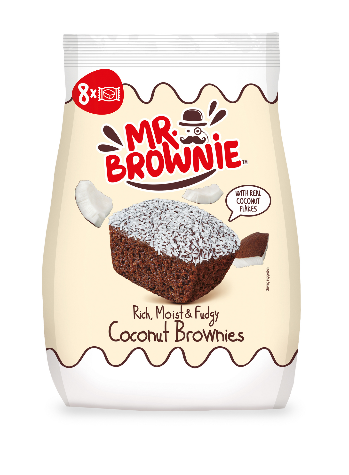 Sokeri, auringonkukkaöljy, KANANMUNA, VEHNÄJAUHO, 8% raastettu kookos, glukoosisiirappi, kaakaojauhe, stabilointiaineet (sorbitoli, glyseroli, guarkumi), emulgointiaineet (rasvahappojen mono- ja diglyseridit, rasvahappojen 1.2 propyleeniglykoliesterit), nostatusaineet (dinatriumfosfaatti, natriumvetykarbonaatti), dekstroosi, säilöntäaine (natriumpropionaatti), VEHNÄTÄRKKELYS, happo:(sitruunahappo), kookosaromi, rautasulfaatti, foolihappo. Saattaa sisältää jäämiä MAIDOSTA ja SOIJASTA.