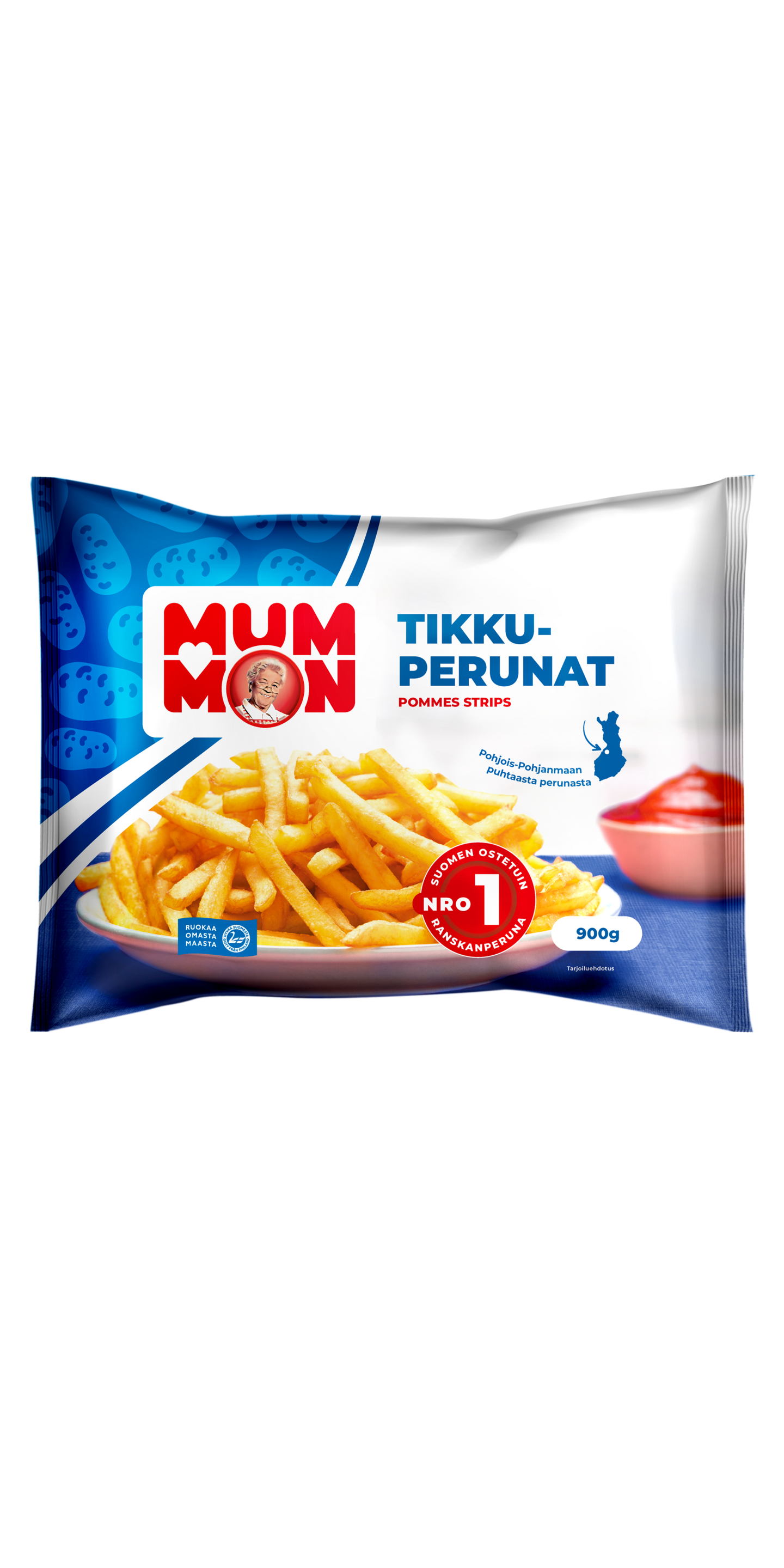 Tutut Mummon Tikkuperunat löydät nyt uusissa sydämellisissä pakkauksissa. Lisäksi Tikkuperunat ovat nyt saatavilla myös suuremmissa 900 gramman pakkauksissa. Tikkuperunat soveltuvat hyvin dippailuun, lisäkkeeksi tai pääruoaksi. Tikkuperunat voi valmistaa uunissa, airfryerissa, rasvakeittimessä tai jopa mikrossa. Kaikki Mummon tuotteet valmistetaan 100 % suomalaisesta perunasta.