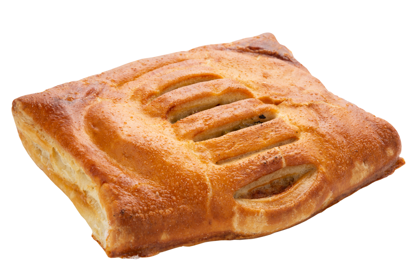 LaktoositonLehtevä taikina, sisällä broilerpihvi ja kurkkusalaatti. Sopiva eväsherkku tai välipala.
