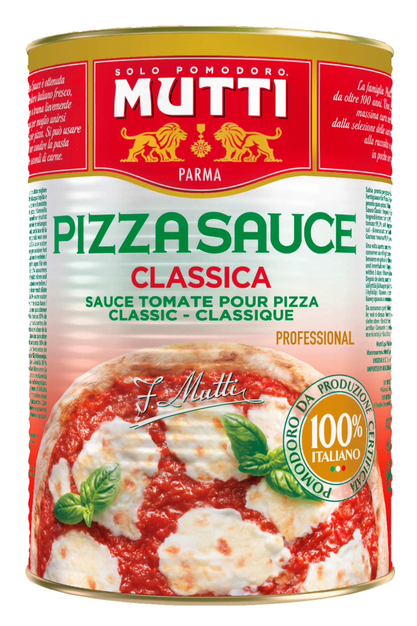 Muttin klassinen pizzakastike on oikea valinta, kun haluat taikoa aidon italialaisen pizzan maun myös omaan kotikeittiöösi! Jokainen 4100g pizzakastike on valmistettu 9000 grammasta tuoreita, auringon täydellisesti kypsyttämiä italialaisesten suosikkitomaatteja, jotka ovat 100% italialaista alkuperää ja sisältävät ainoastaan luonnollisia makuja. Kastike on juuri sellainen, jonka italialainen kotikokki valitsisi oman pizzansa päälle.