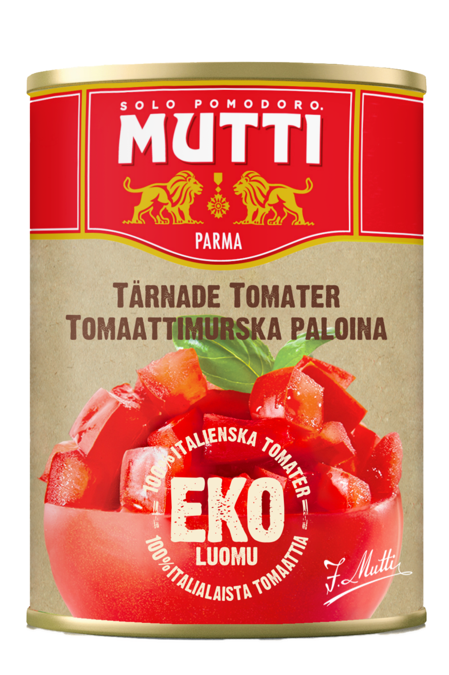 Muttin luomu-tomaattikuutioissa on raikas vastapoimitun tomaatin maku. Tässä ainutlaatuisessa tuotteessa tomaattimehuun on yhdistetty paloiteltua hedelmälihaa. Rikkaan koostumuksensa ansiosta tuote kestää myös pitkää kypsennystä ja korkeita lämpötiloja esimerkiksi uuniruoissa. Se soveltuu erinomaisesti itse tehdyn pizzan päälle, liha- ja kasvisruokiin tai tuorepastan kastikkeeksi. Mutti valmistaa luomu-tomaattikuutiot italialaisista tomaateista, jotka ovat peräisin 100-prosenttisen luonnonmukaisilta viljelmiltä.