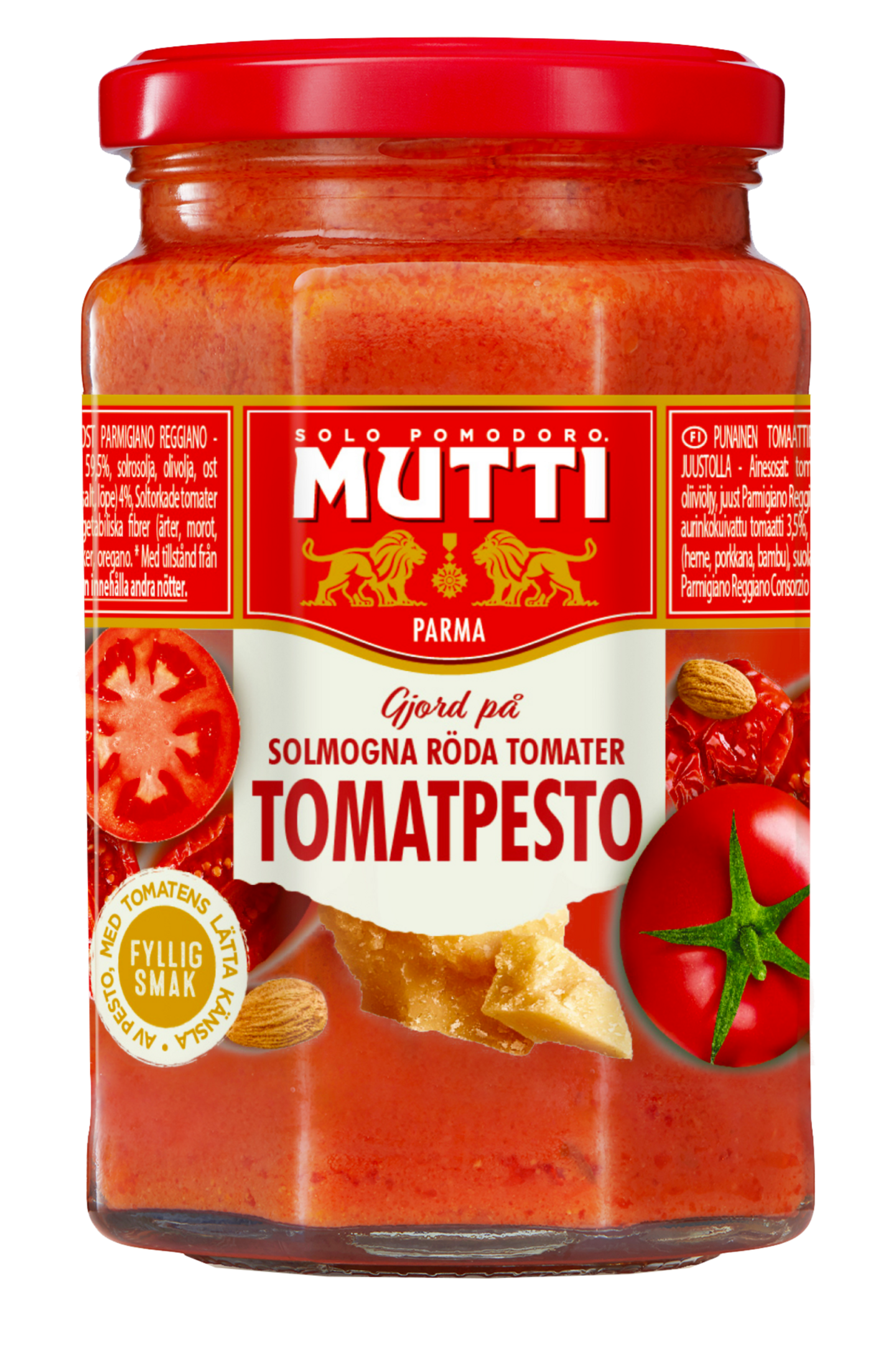 Muttin punainen tomaattipesto on valmistettu 100 % Italialaisista auringon kypsyttämistä punaisista tomaateista. Muttin tomaattipestossa on yhtä paljon makua kuin perinteisissä pestokastikkeissa ja tomaatin ansiosta ne ovat kevyempiä. Koska Muttin pestokastikkeet sisältävät yli 50 % tomaattia, on niissä vähemmän öljyä ja suolaa. Maukasta ja herkullista, mutta kevyempää.