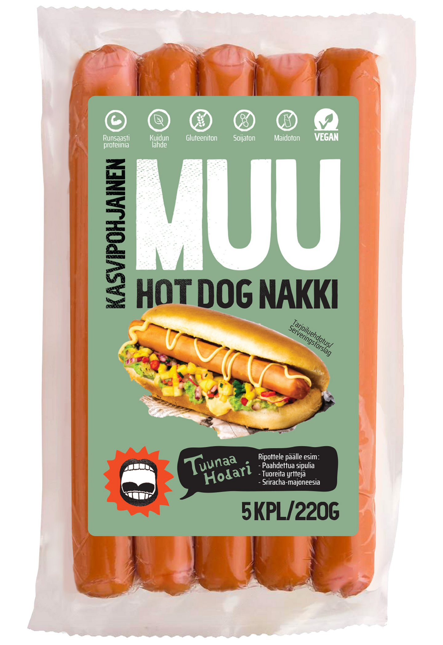 MUU Hot Dog Nakki on jotain aivan uutta ja MUUnlaista vegenakkiskenessä! Lihaisa ja maukas syksyn uutuus sopii tietysti hodarissa käytettäväksi, mutta myös kaikkeen ruuanlaittoon, esimerkiksi nakkikastikkeeseen tai -keittoon. Uutuustuote on valmistettu herkullisesta herneproteiinista.