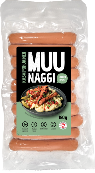 VegaaninenMUU Naggi on herkullinen hernepohjainen nakki, jolla muutat lempireseptisi helposti kasvipohjaiseksiksi. Paista tuote pannulla ja tarjoile perunamuusin tai ranskalaisten kanssa. Kokeile MUU Naggia myös arkiklassikoissa nakkikastikkeessa ja nakkikeitossa. MUU Naggi on Sydänmerkki-tuote, eli kategoriassaan parempi valinta terveydelle. MUU Naggi on helppo valinta oman terveyden ja maapallon puolesta.