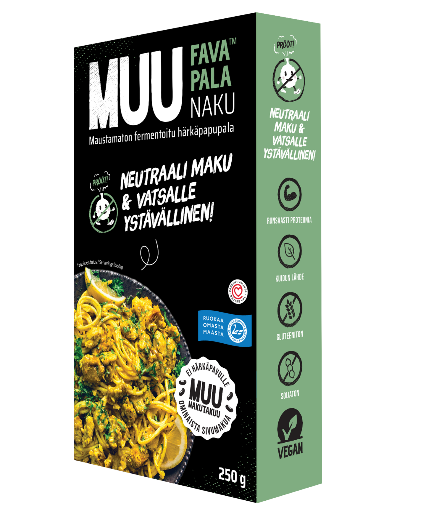 VegaaninenMUU Papupala on siitä mahtava kaveri keittiöön, että sen saa pukea juuri sellaisiin makuihin kuin juuri sillä hetkellä maistuu parhaiten. Tuotteen maku on todella neutraali, eikä palassa ole tietoakaan härkäpavulle ominaisesta kitkeryydestä, joka saa toiset irvistämään. Tuote on helppo maustaa itselle sopivaksi, eikä läpi puske häiritseviä sivumakuja, mistä voimme kiittää omaa erityistä fermentointiprosessiamme.