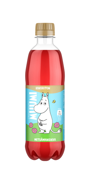 Metsämansikan makuinen Muumi on klassikkovirvoitusjuoma, joka sopii monenlaiseen tilanteeseen joko janonsammuttajaksi tai herkuksi. Juoma on sokeriton.