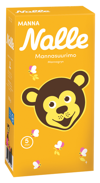 VegaaninenNalle mannasuurimot ovat vehnänjyvän karkeita ydinosia. Mannasuurimoista valmistat herkullista puuroa, velliä tai jälkiruokia. Voit käyttää mannasuurimoita myös esimerkiksi kakkuvuokien jauhottamiseen. Keittoaika 5 min. Pakkauskoot: 500 g ja 1 kg