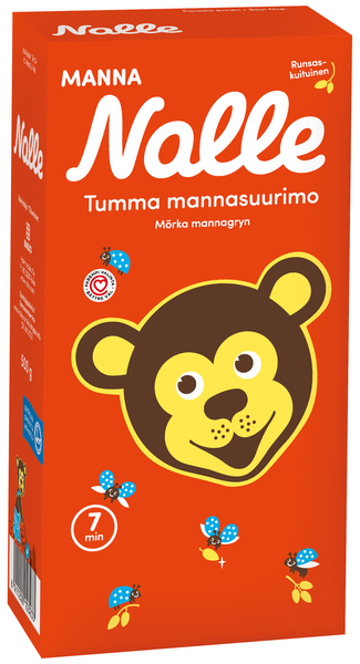 VegaaninenTerveellisempi vaihtoehto mannapuuron valmistukseen. Nalle tumma mannasuurimo sisältää runsaasti kuitua.