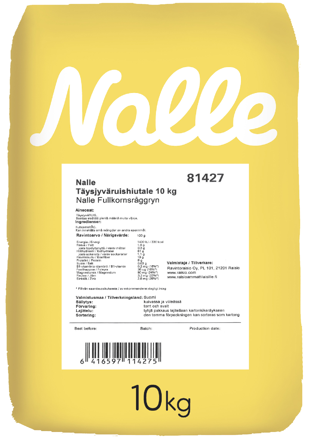 Nalle ruis täysjyvähiutale 10kg