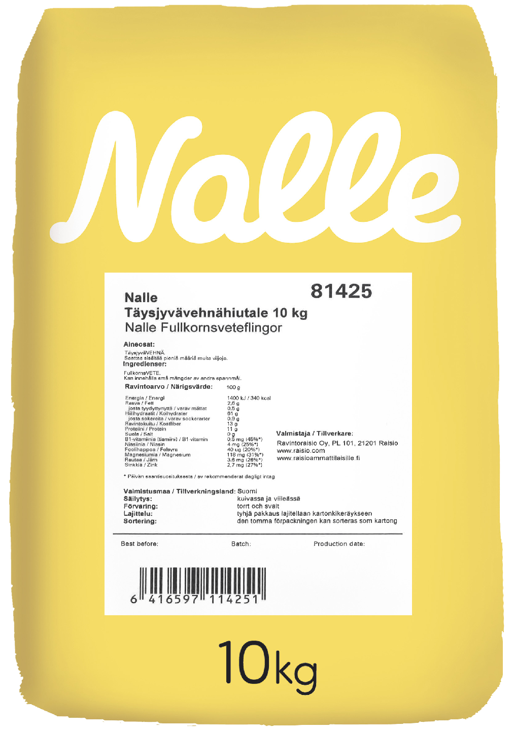 Nalle vehnä täysjyvähiutale 10kg