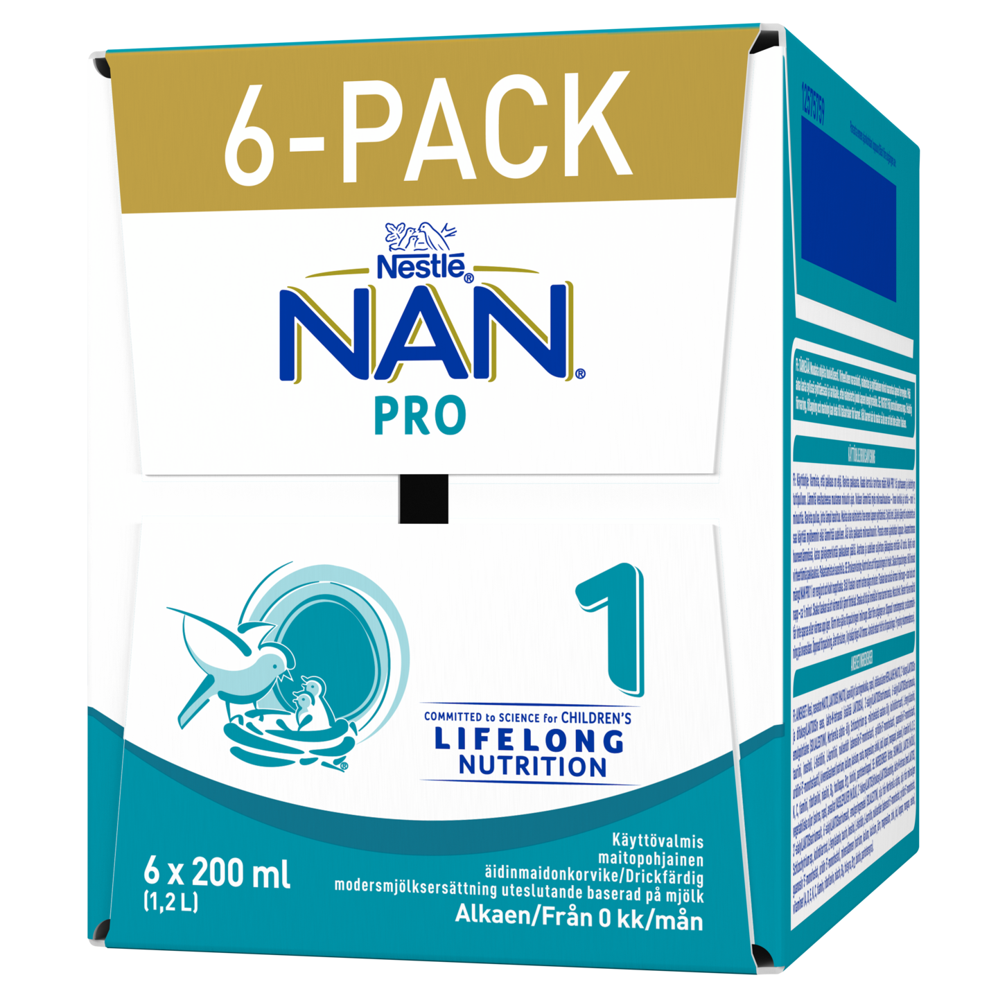Nestlé NAN PRO 1 200ml/500ml/1L on käyttövalmis, nestemäinen maitopohjainen äidinmaidonkorvike, jota voidaan antaa vastasyntyneelle syntymästä alkaen äidinmaidon lisäksi tai sen sijaan neuvolan ohjeiden mukaisesti. Se täyttää lapsen ravitsemukselliset tarpeet 6 kk:n ikään saakka.