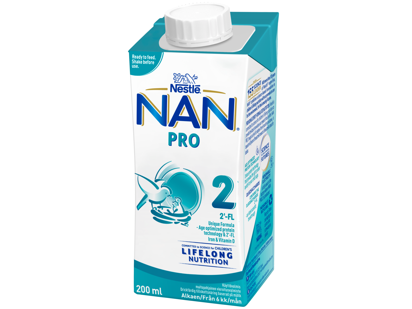 "Nestlé NAN PRO 2 200ml on käyttövalmis maitopohjainen vieroitusvalmiste, jota voidaan antaa 6 kuukauden iästä alkaen osana tasapainoista ja monipuolista ruokavaliota.