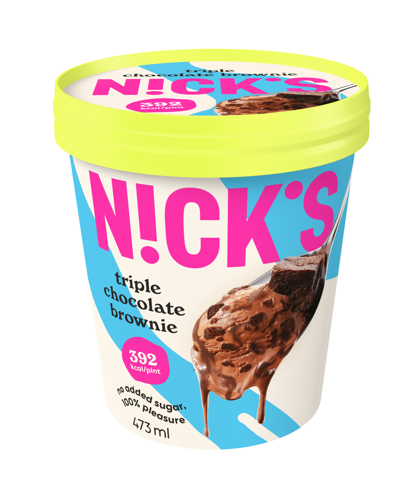 Suussasulavaa suklaajäätelöä, jossa meheviä browniepaloja ja suklaakastikepyörre. Nick's tuotteet eivät sisällä lisättyä sokeria, vehnää tai palmuöljyä - mausta kuitenkaan tinkimättä.