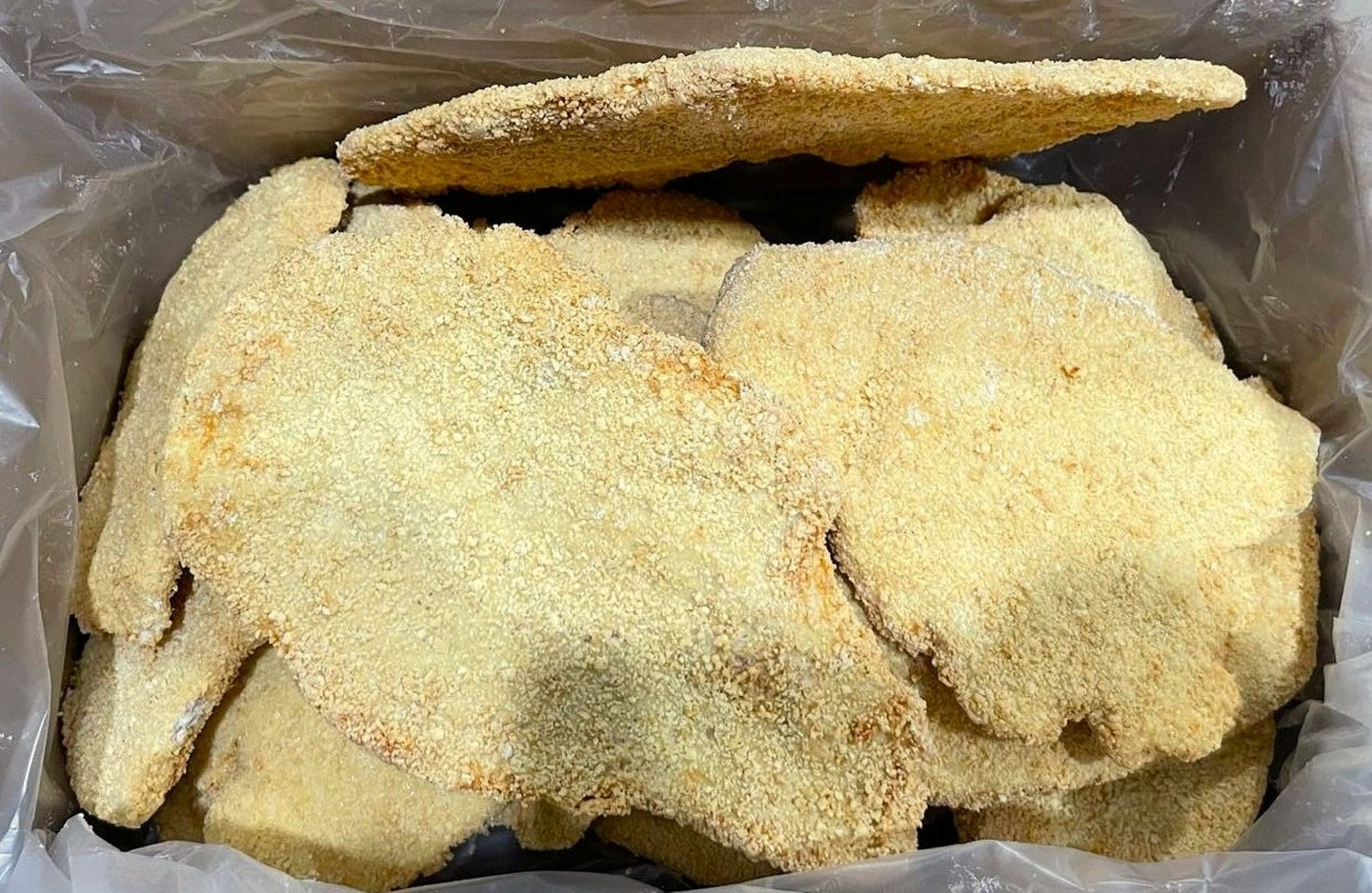 Rapeaksi paneroituja ja esikypsennettyjä broilerinleikkeitä. Valmistettu broilerinrintafileestä. Pakastetuote.