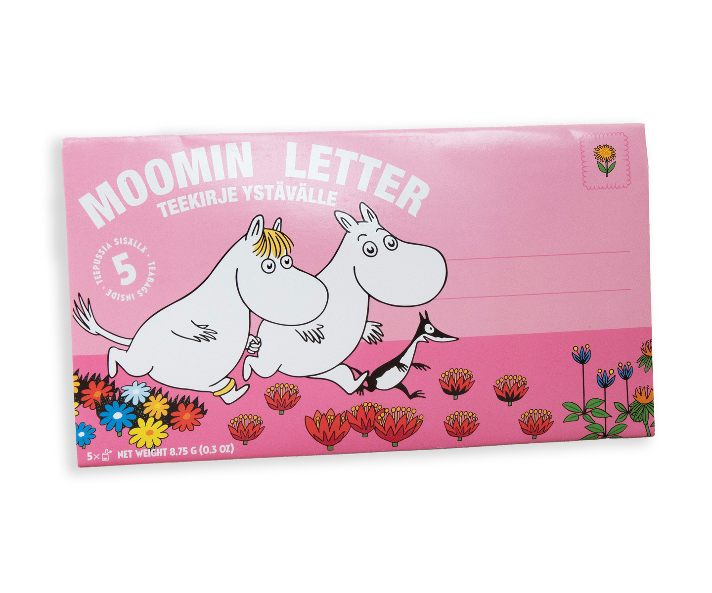 Mikä voisi olla hauskempaa kuin kirje ystävältä? Tämä suloinen Muumi-kuori sisältää viisi herkullista Muumi teemakua mustaa teetä sekä rooibosta.