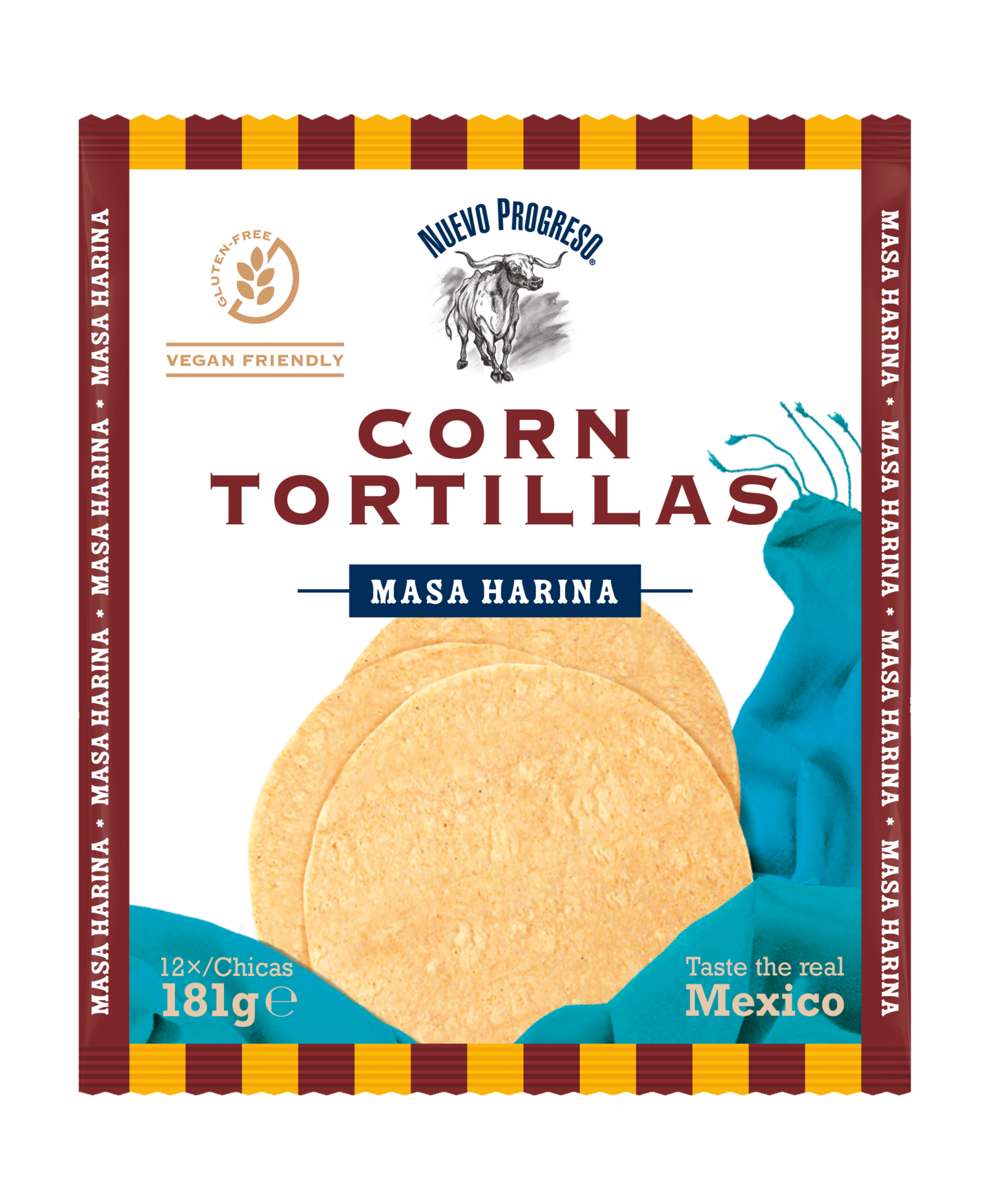 VegaaninenTaste the real Mexico! Yksi meksikolaisen keittön kulmakivistä ovat tortillat. Nuevo Progreso maissitortilla on herkullinen gluteeniton vaihtoehto ja on valmistettu aidosta Masa Harina maissitaikinasta, kuten aito meksikolainen maissitortilla.